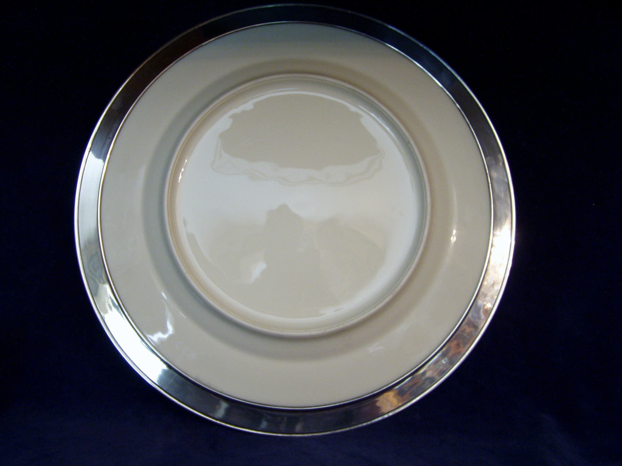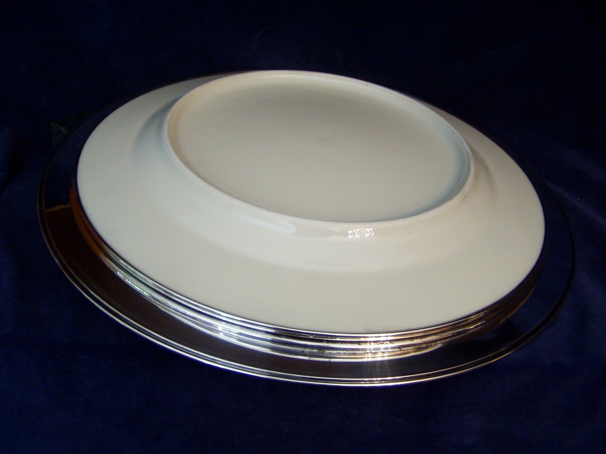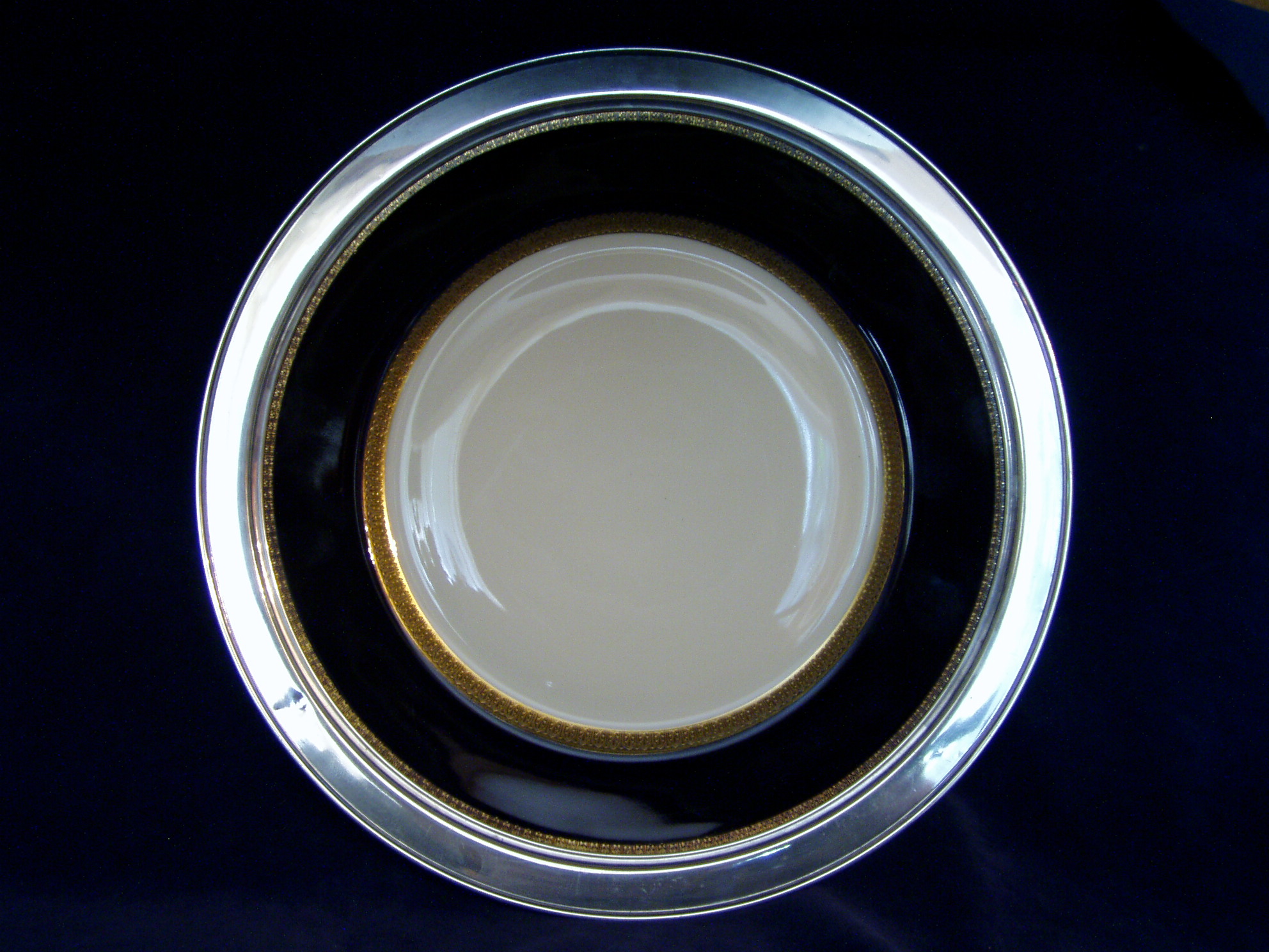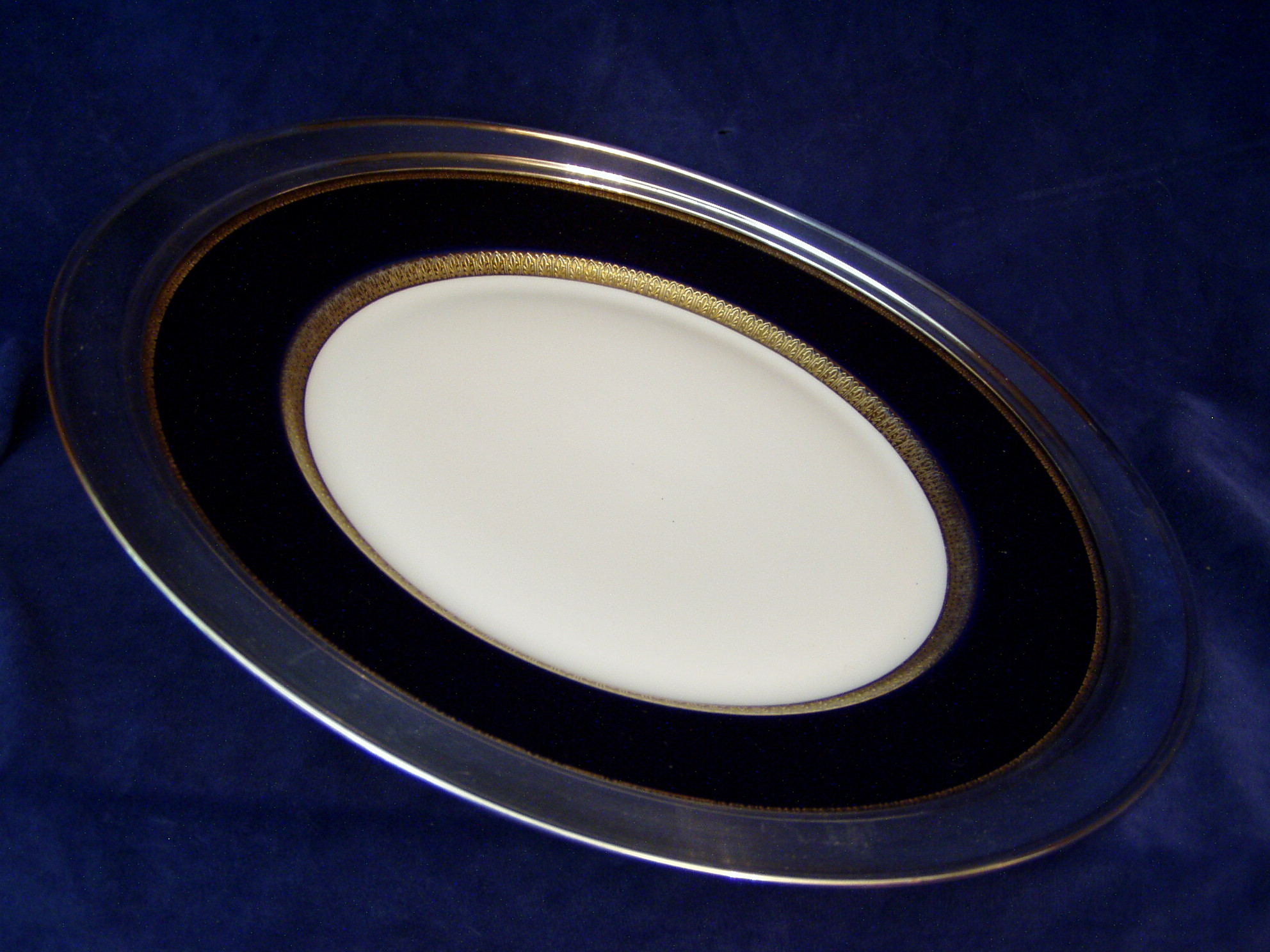 Sterling Silver trimmed Cake Plate w/Cobalt & gilt edging; probably an unmarked Lenox Platter