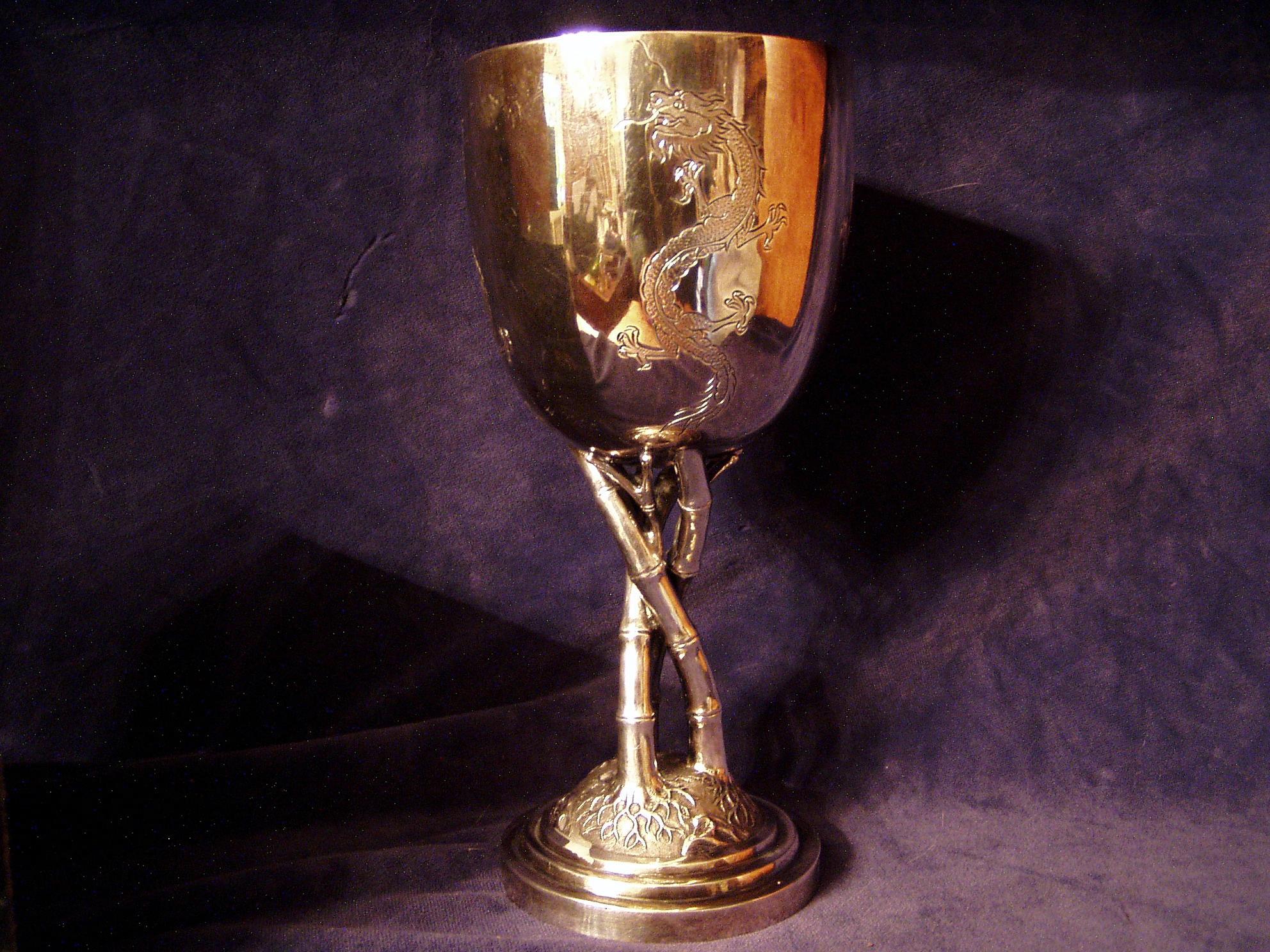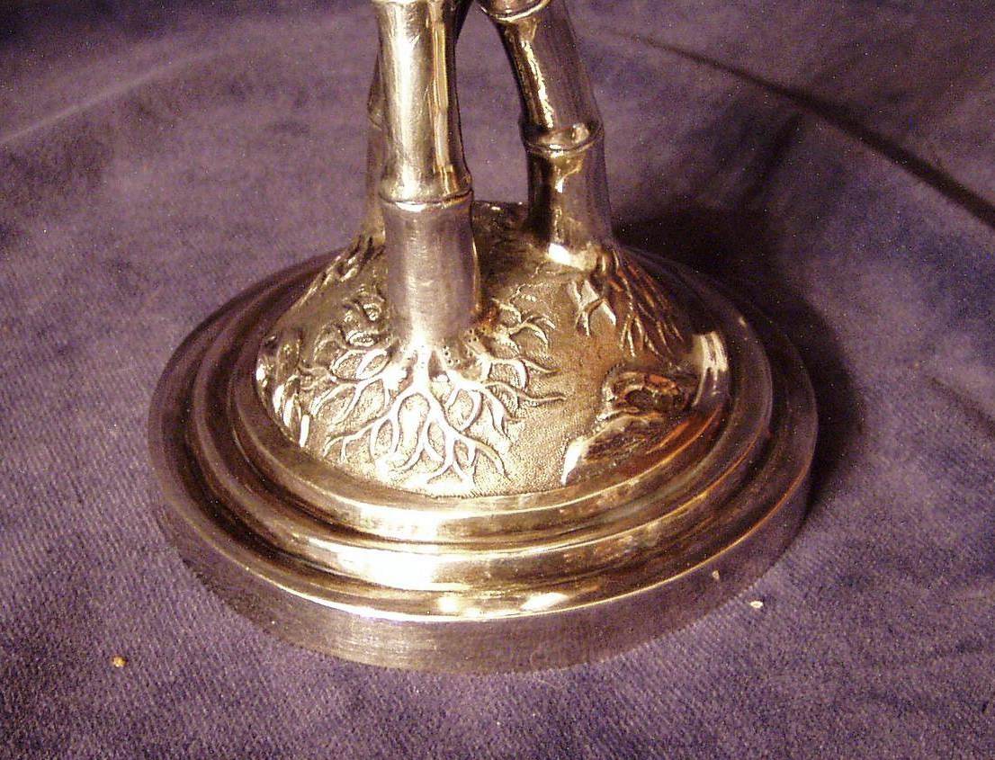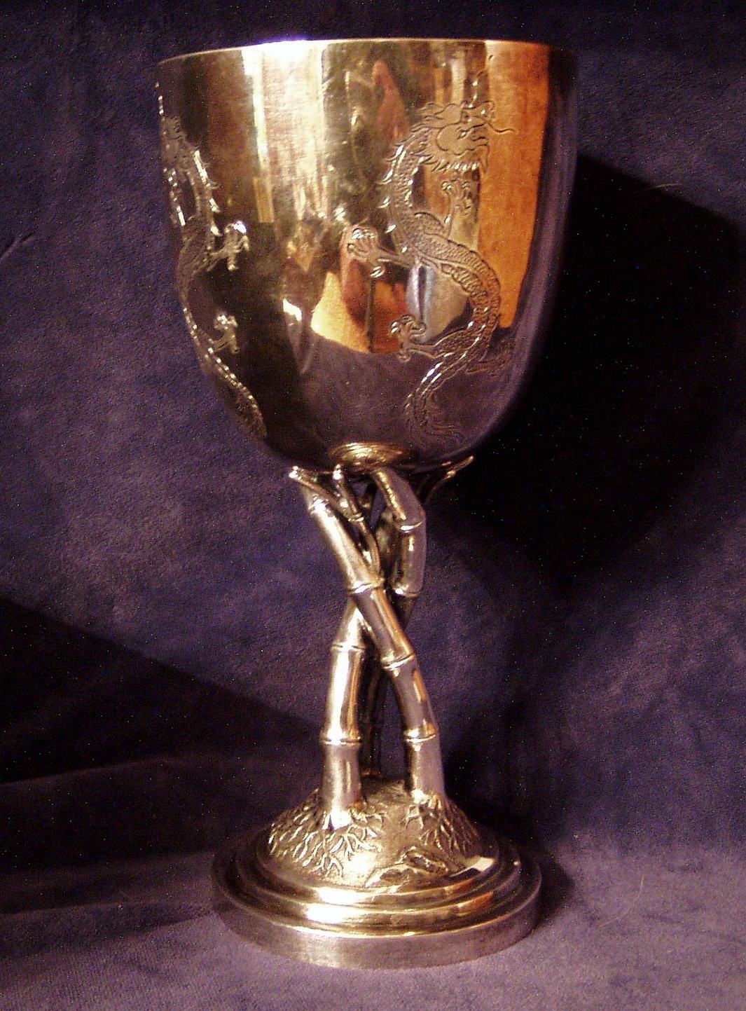 Four Toe’d Incised Dragon cup on three twisted Bamboo culmes as a stem rising from