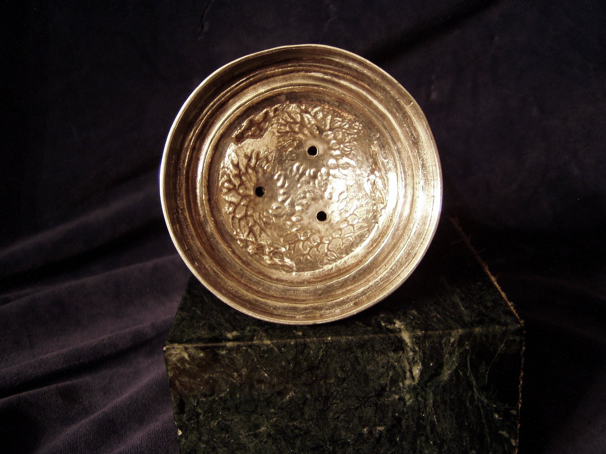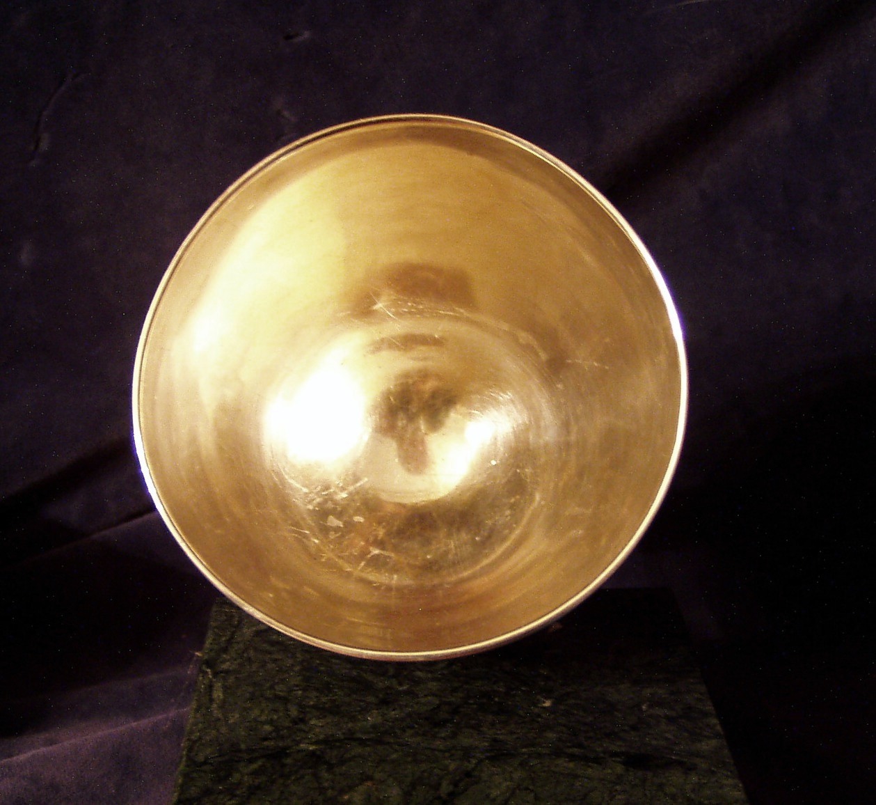 ¾” Height, Width of bowl 3 ½”, 900F, cr 1915. Slight tilt due to minor collapsion: