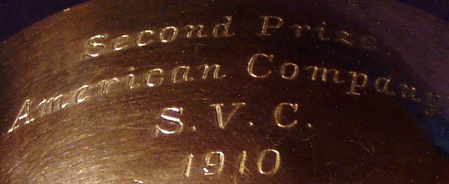 dents. Trace gilding in bowl. Engraved Second Prize, American Co. S.V.C. ( Shanghai