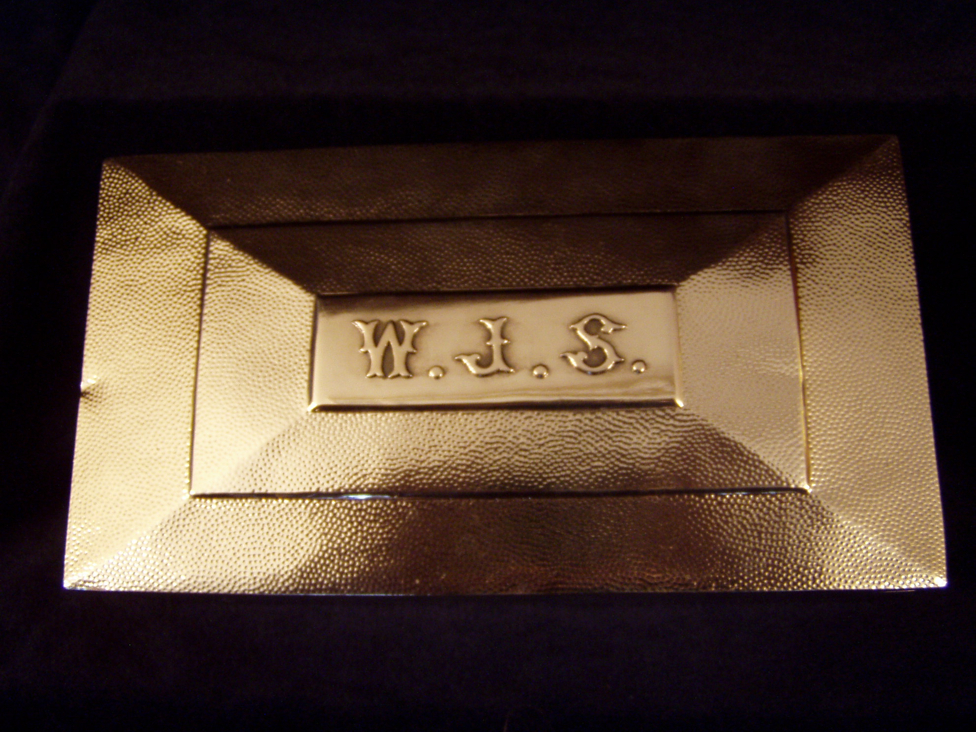 Chinese Export Silver box in the Arts & Crafts style w/applied monogram W.J.S.
