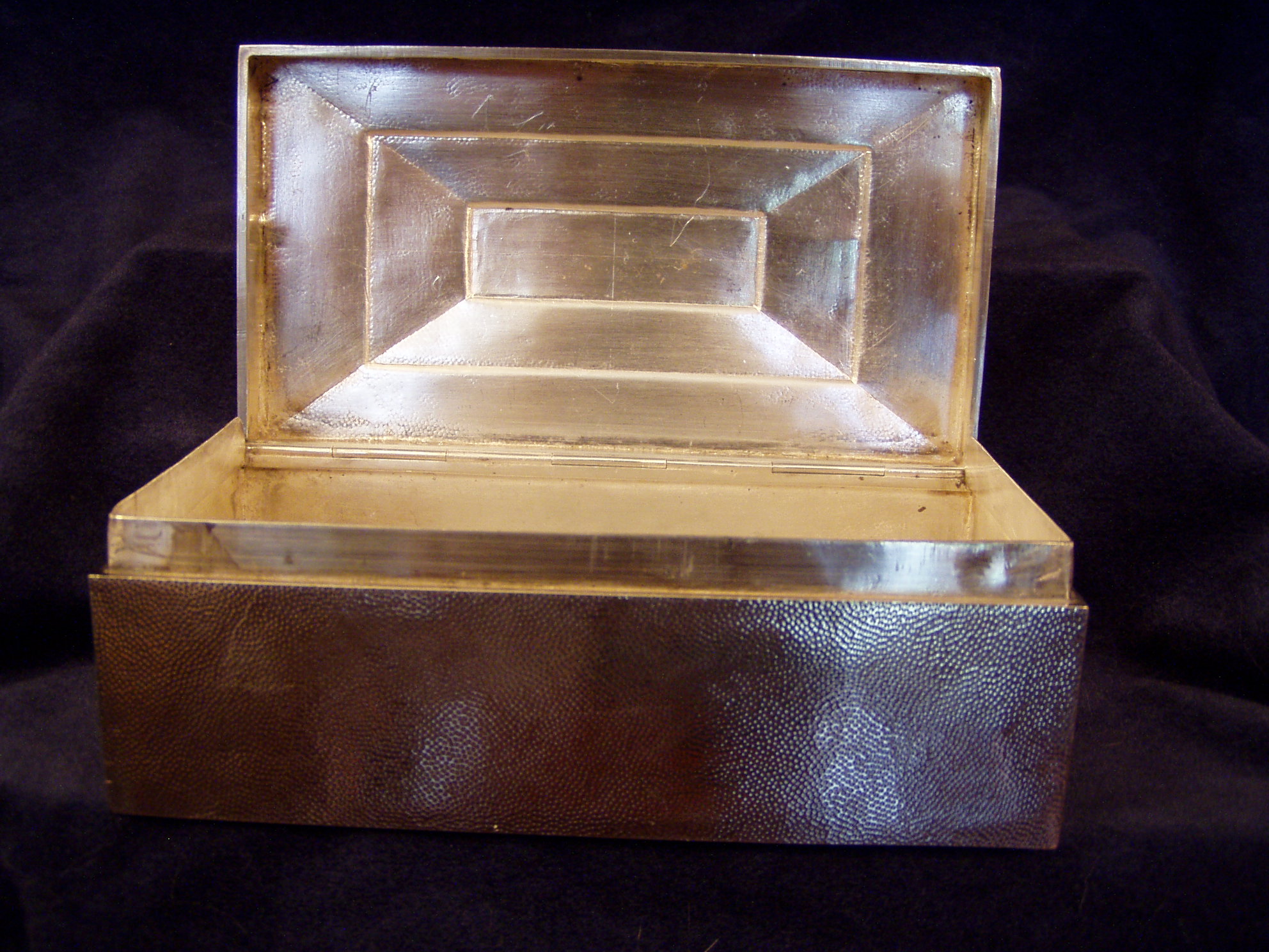 Stipple-work decoration; two dents on the hinged lid Some imperfections in the body