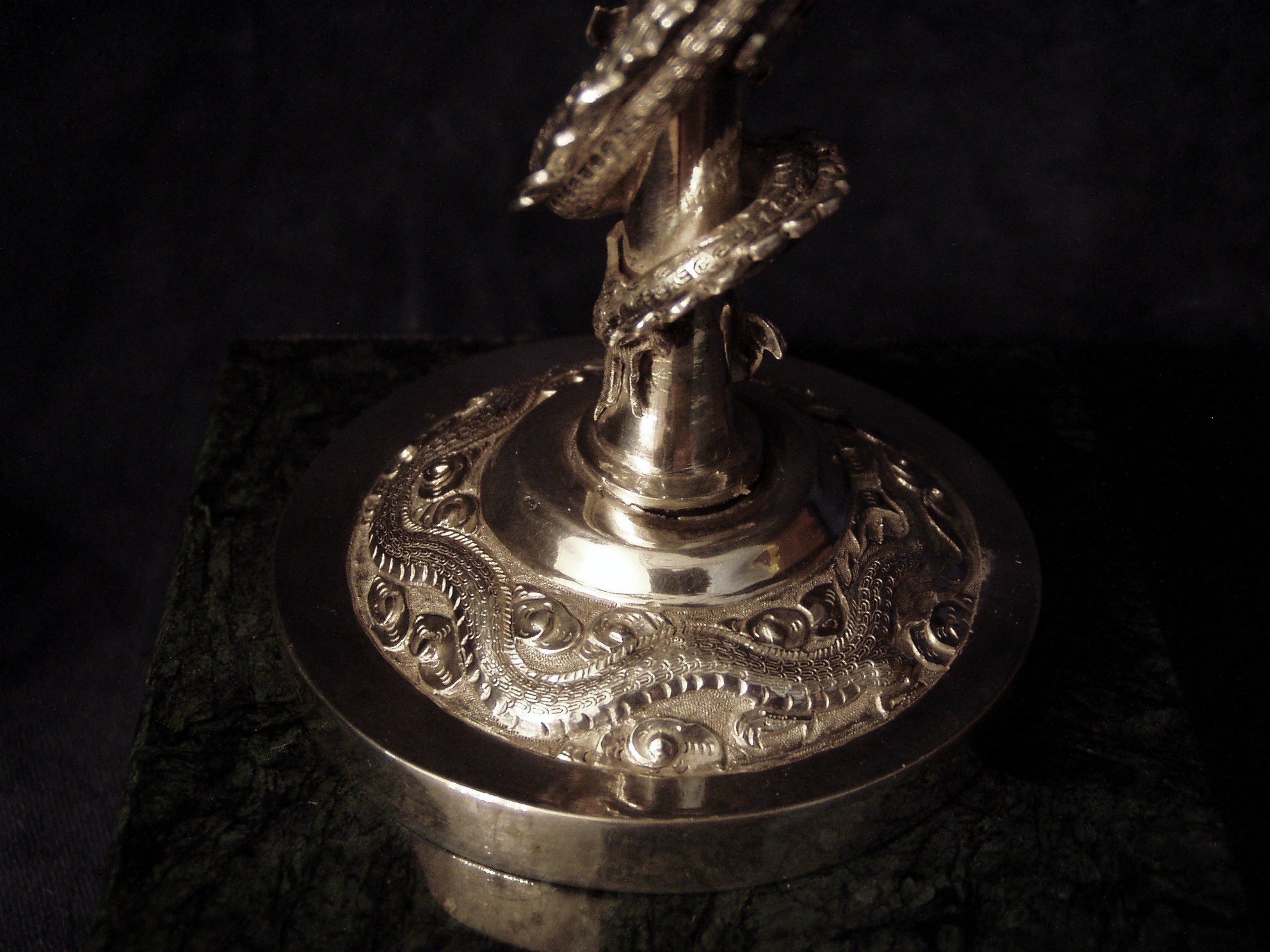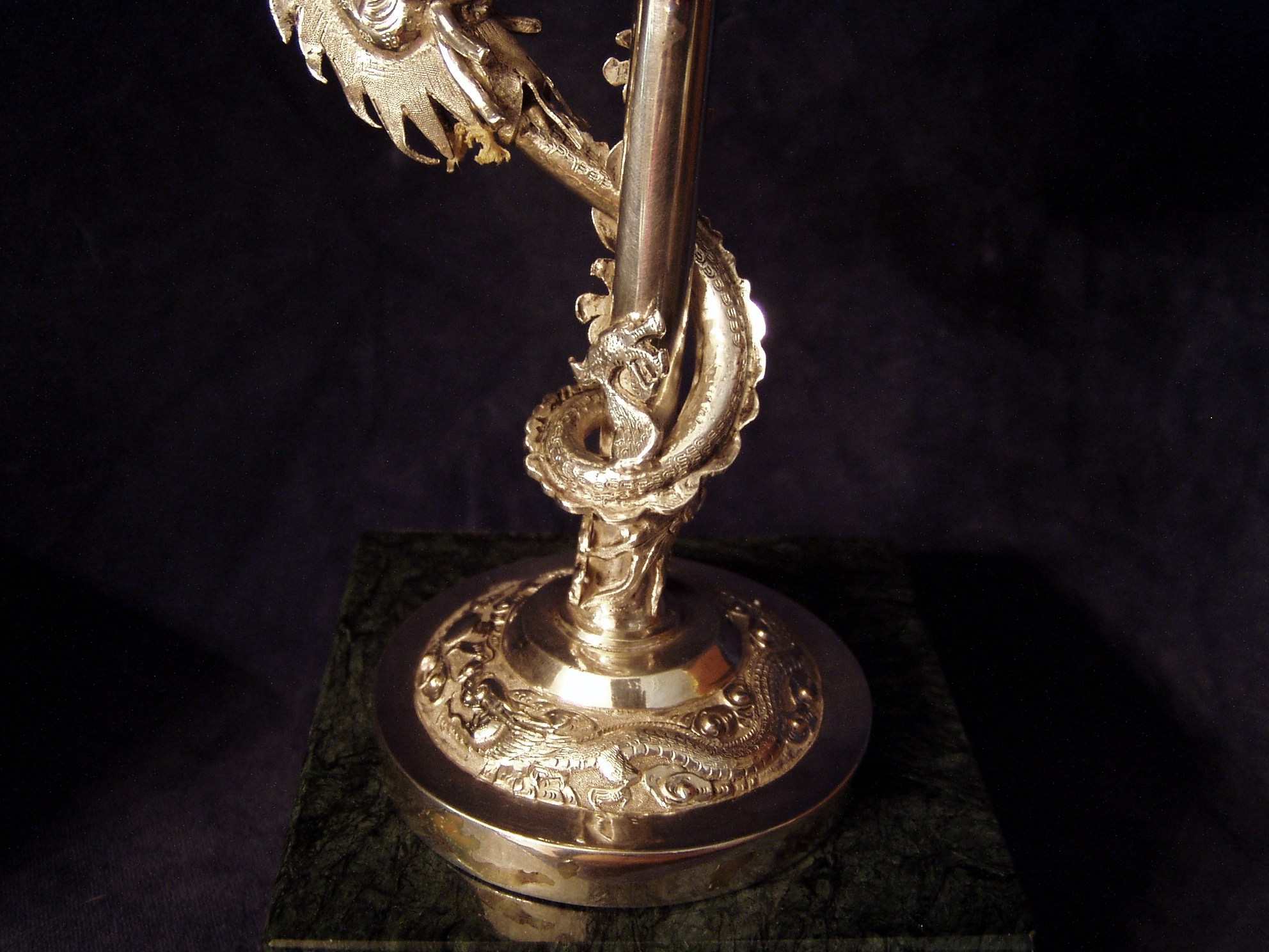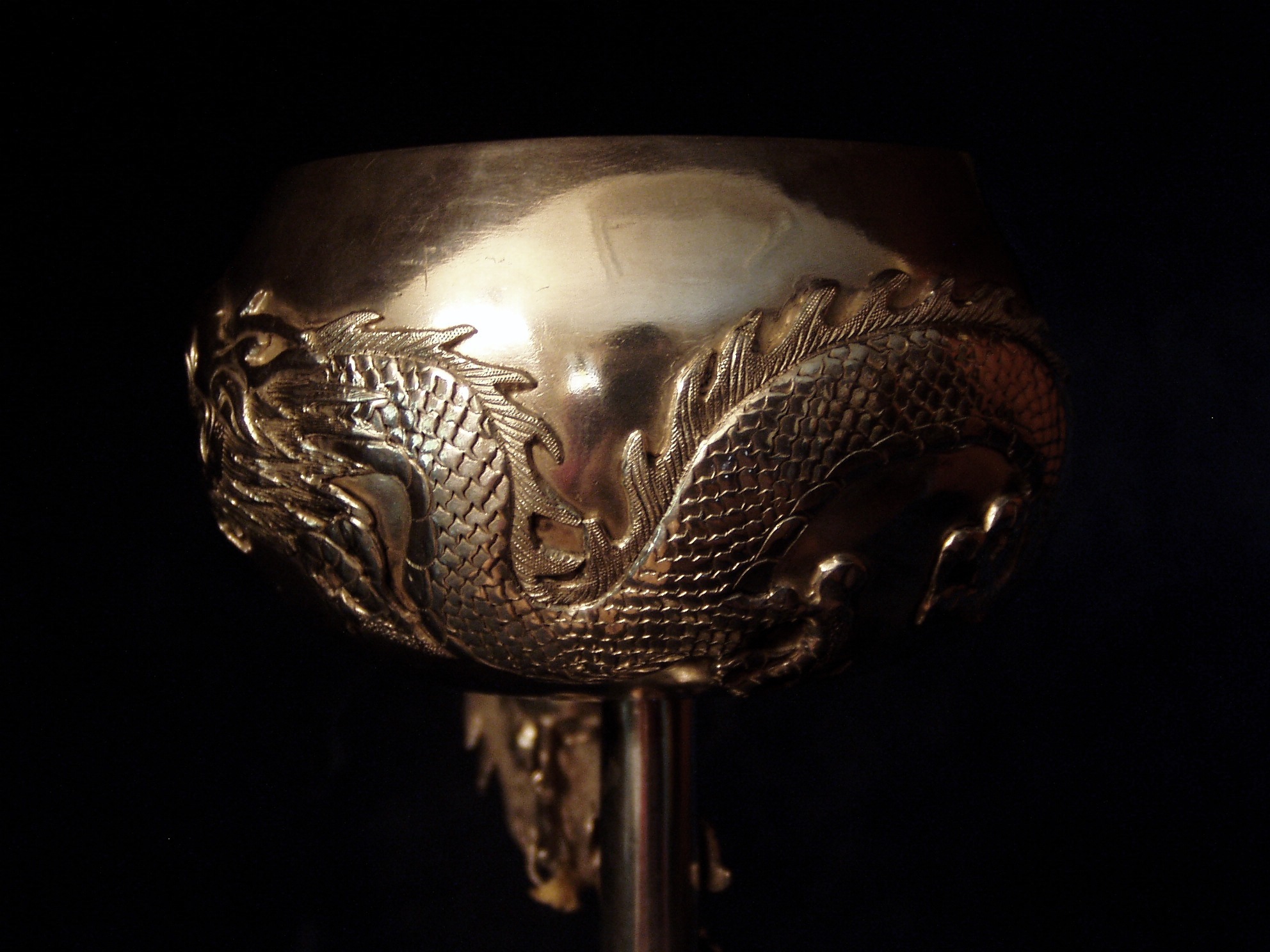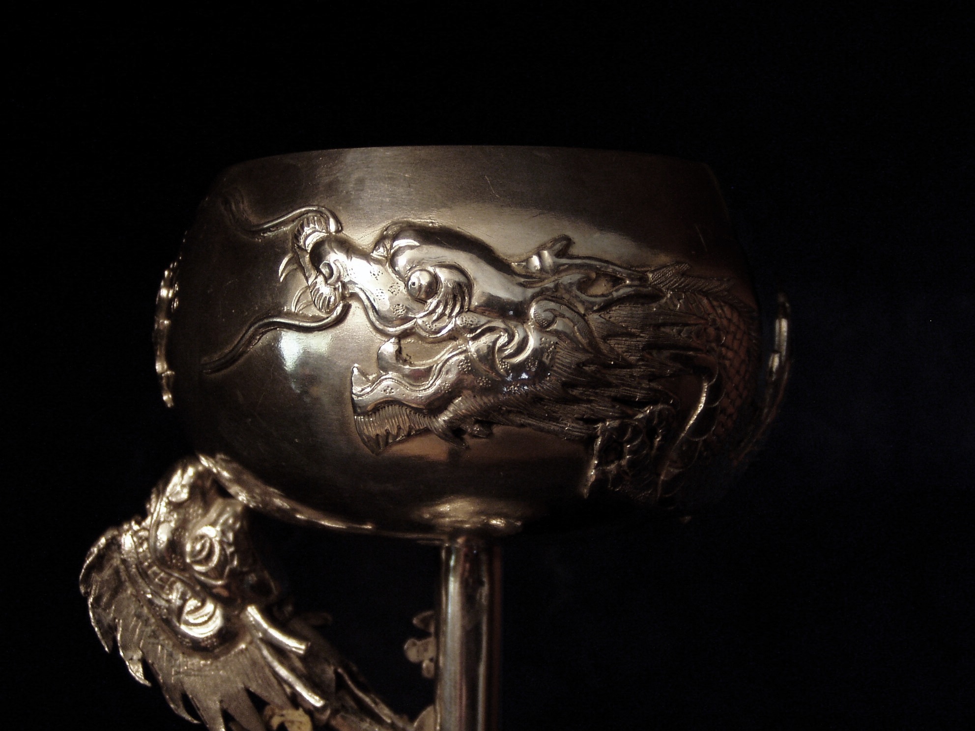 dragon encircling the gilded (interior) bowl itself is also cast and applied and not chased