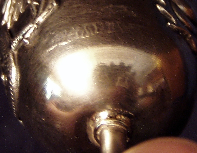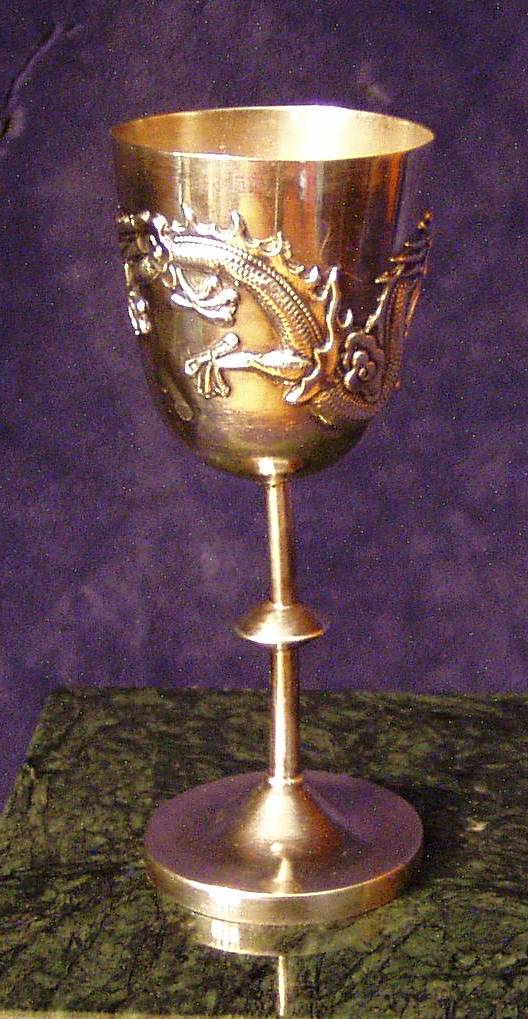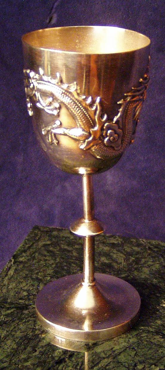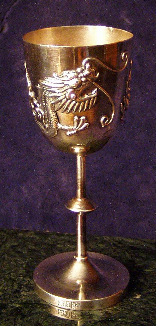 Stemmed Chinese Export Silver Liqueur Cup w/applied Dragon and Flaming Pearl