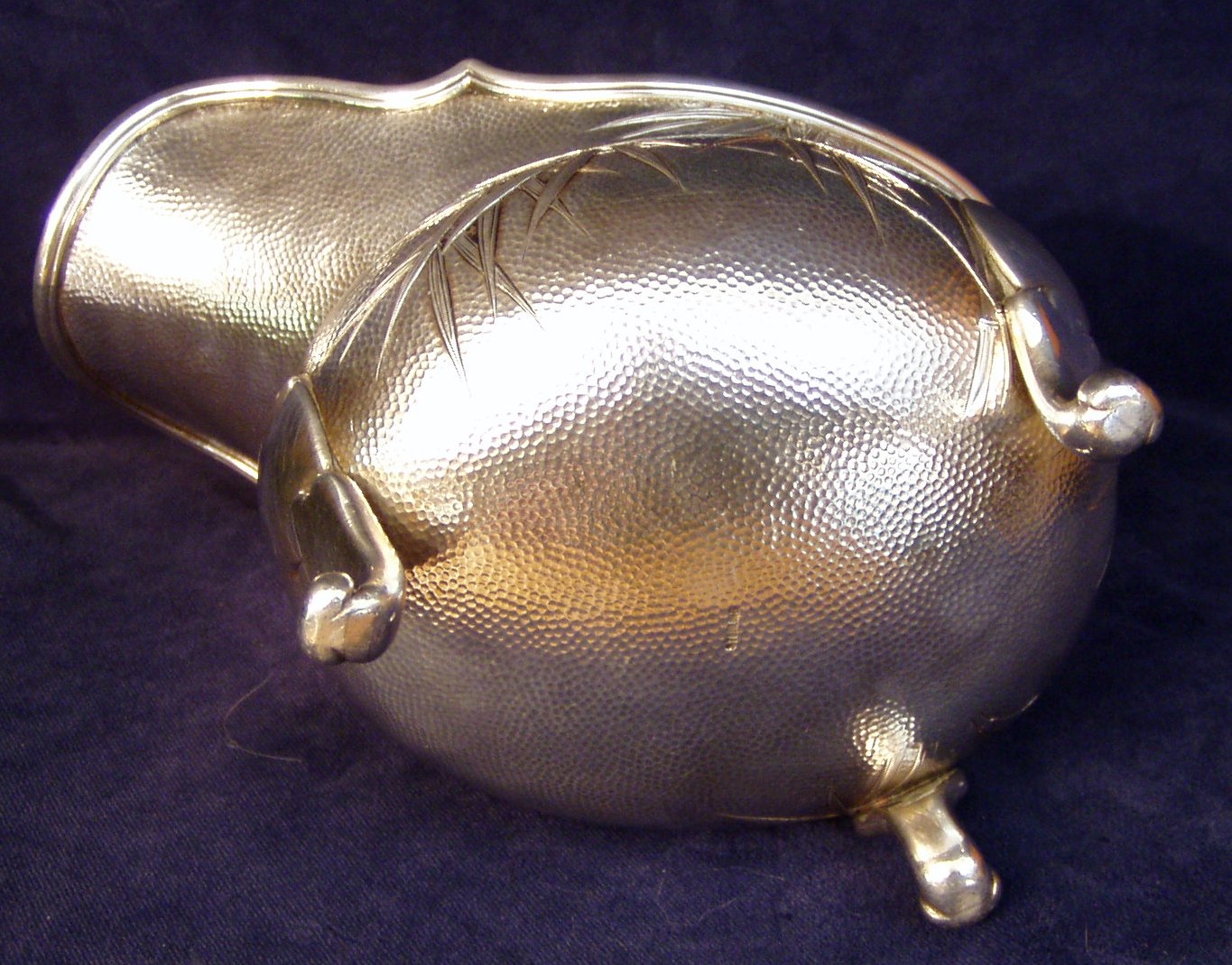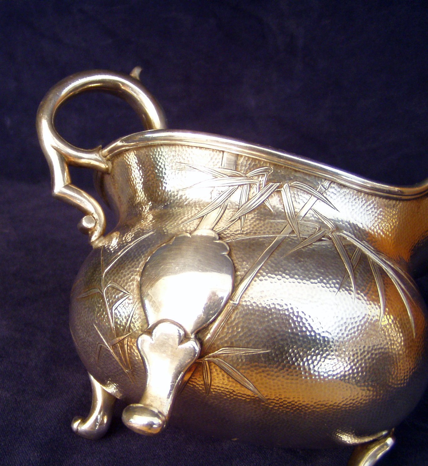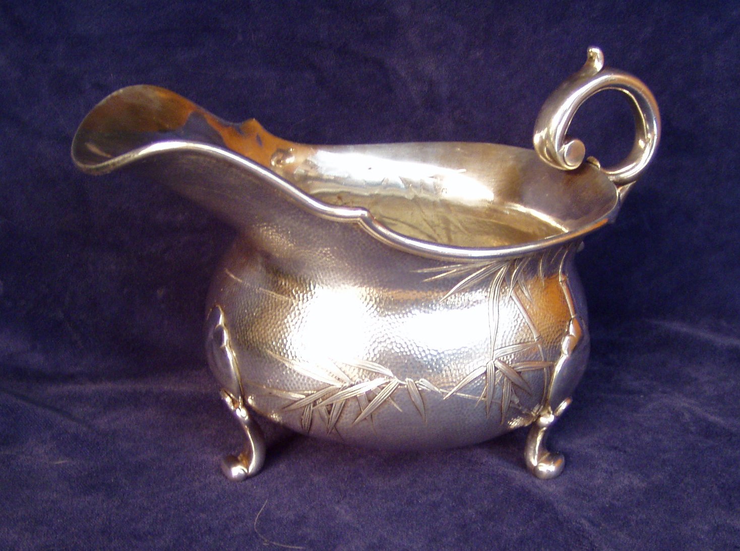 generous pouring lip; marked Sterling; Length 8” X Width 4” X 5 ¼” Height. Bamboo leaf