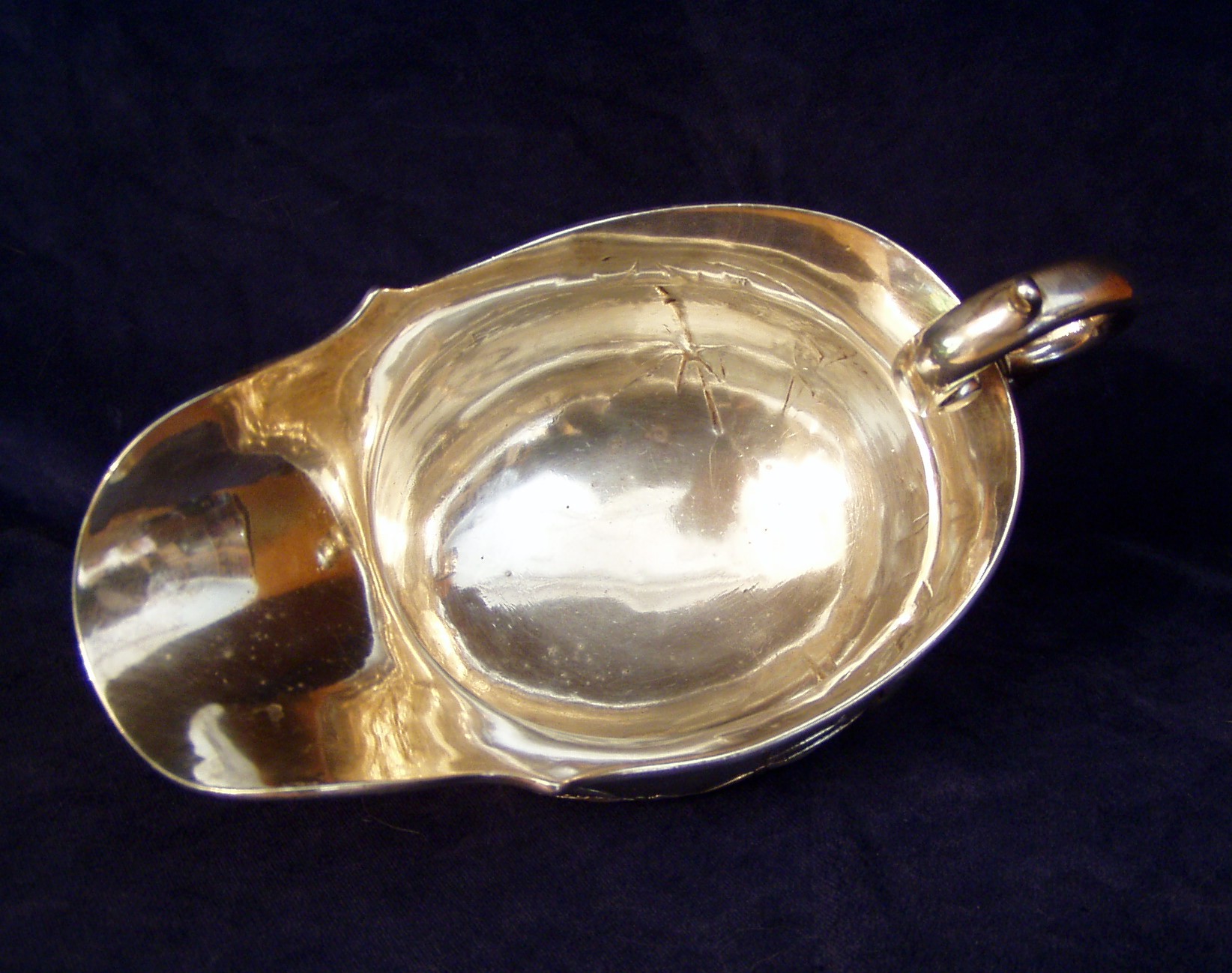Chinese Export Silver Sauceboat on three cast feet w/hollow “C” scroll handle and