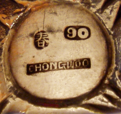 ring matt background. Reserve unmonogramed. Marked Chong Woo, 90 and Ideogram.