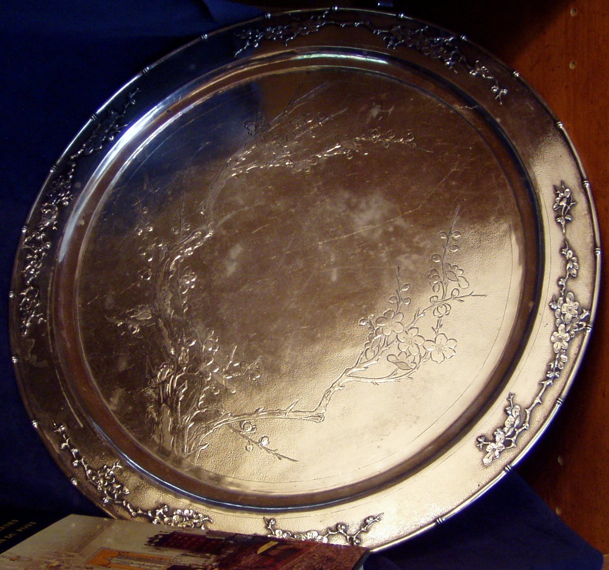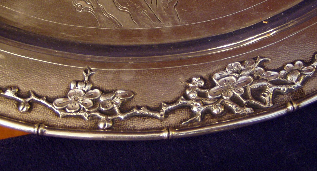 culme as outside edge; ring matt surface. Diameter 15", Weight 36.6 Troy ox. Maker and so
