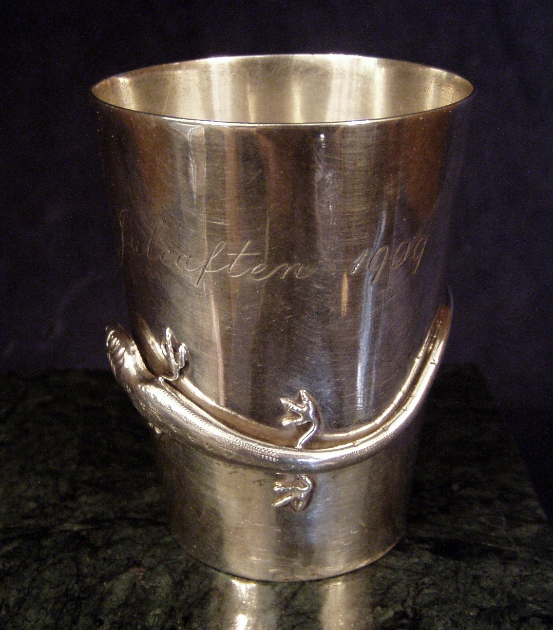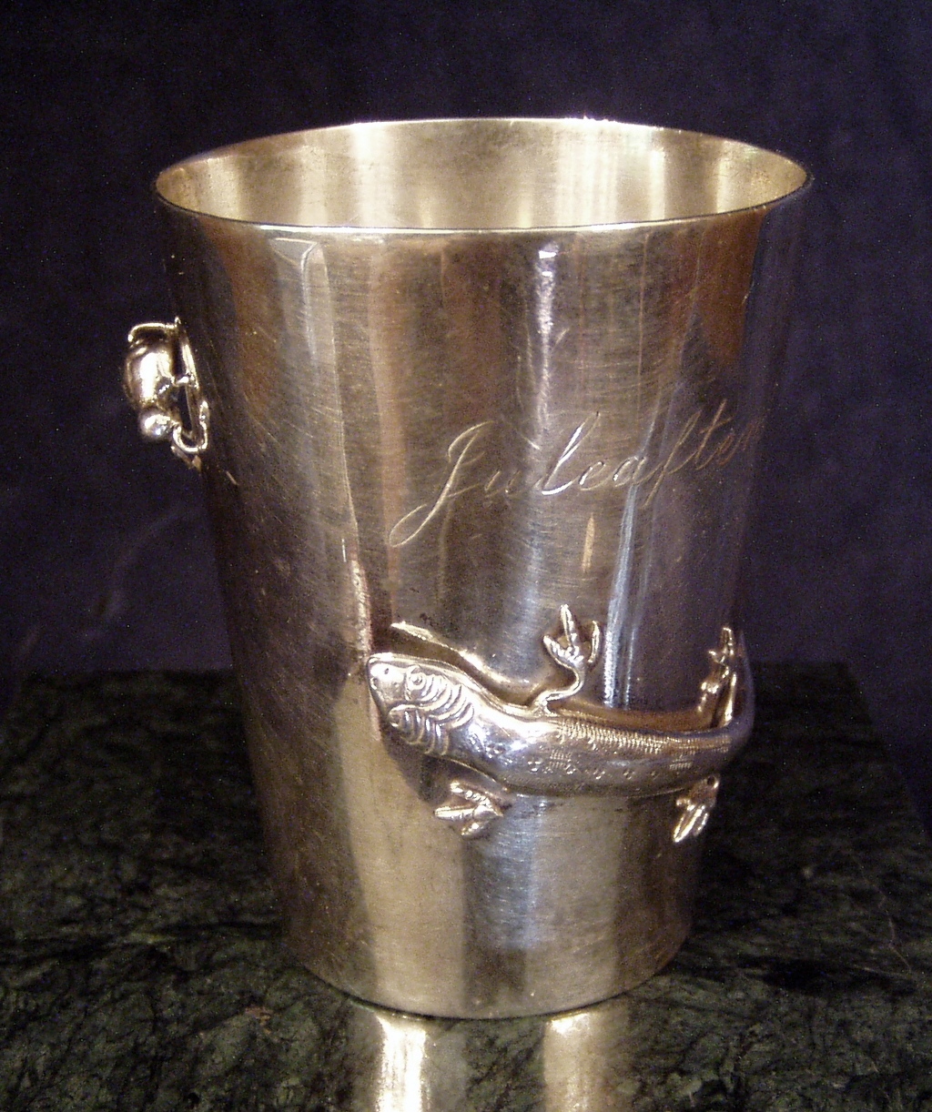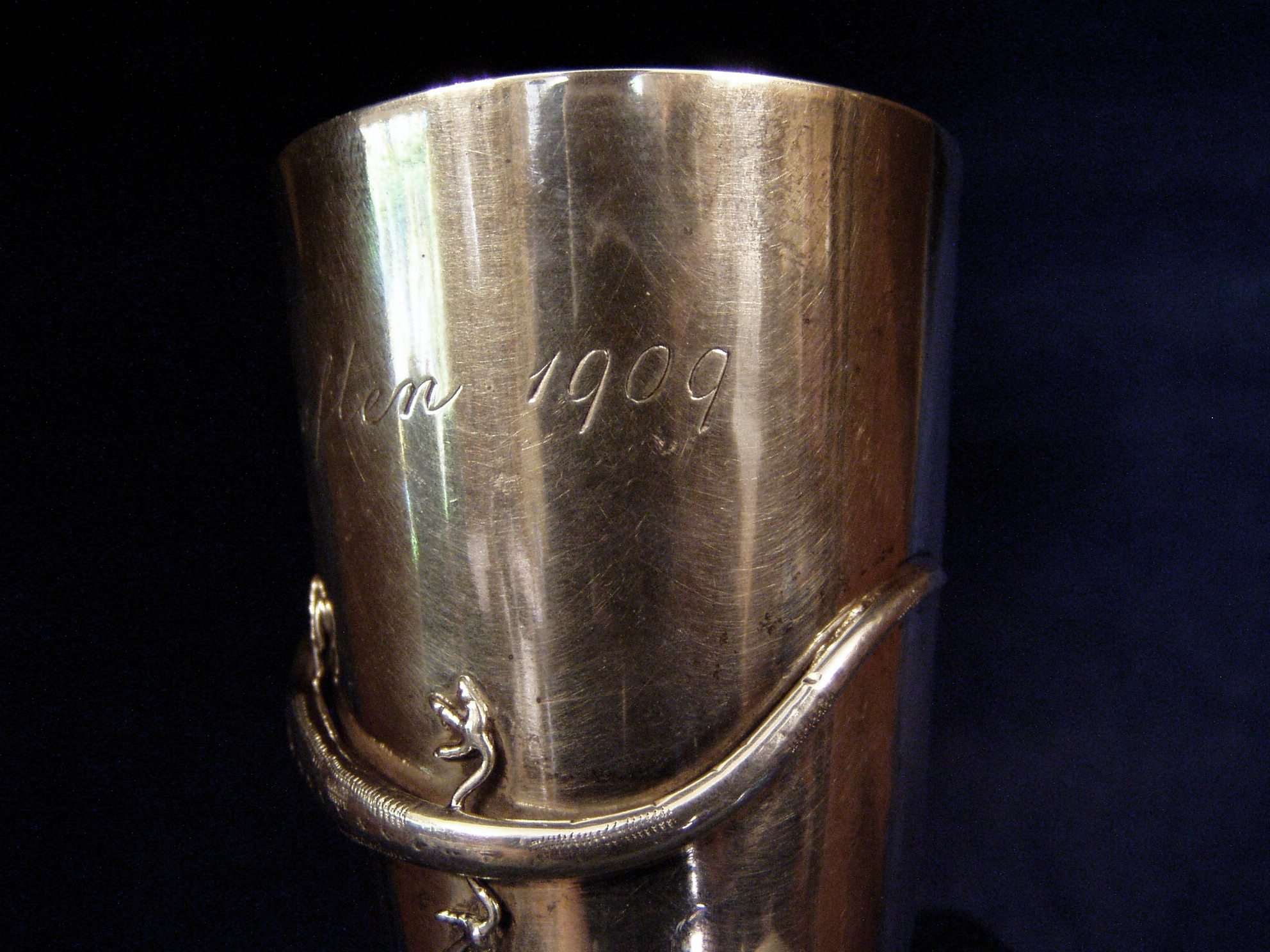 Chinese Export Silver Mint Julep Cup w/applied Salamander and Scarab on Mirror finish body