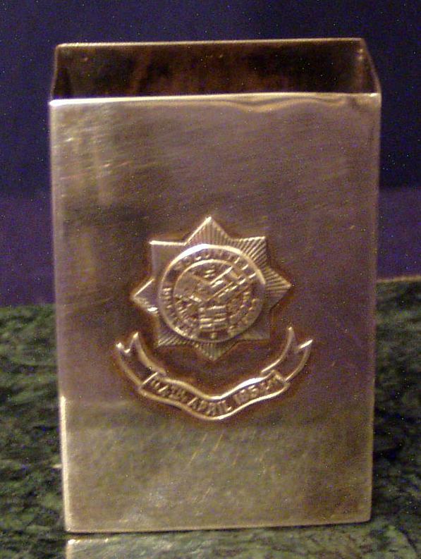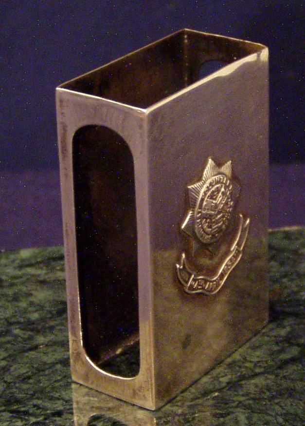 Chinese Export Silver Matchbox holder w/cast and applied Shanghai Volunteer Corps Crest;