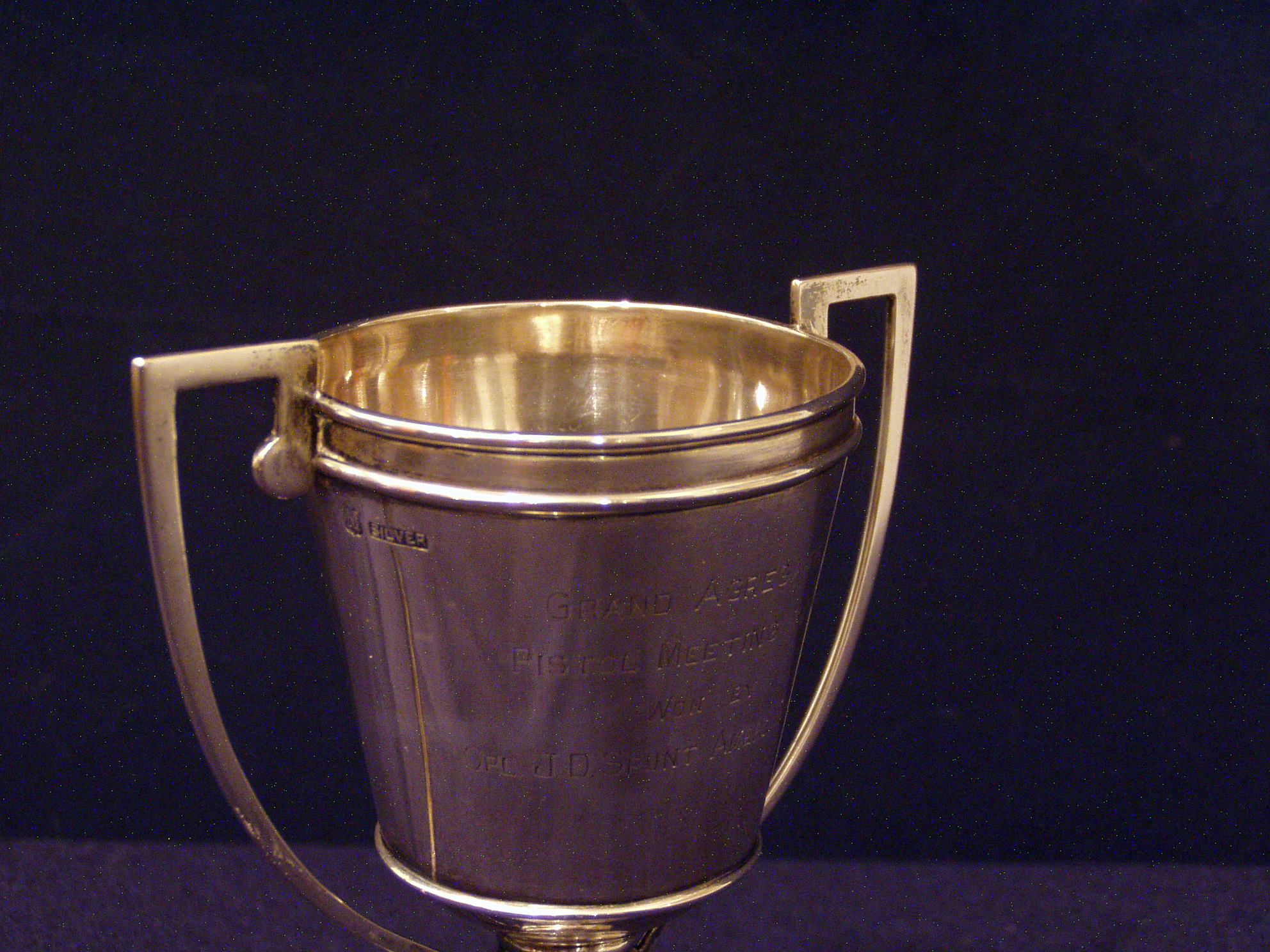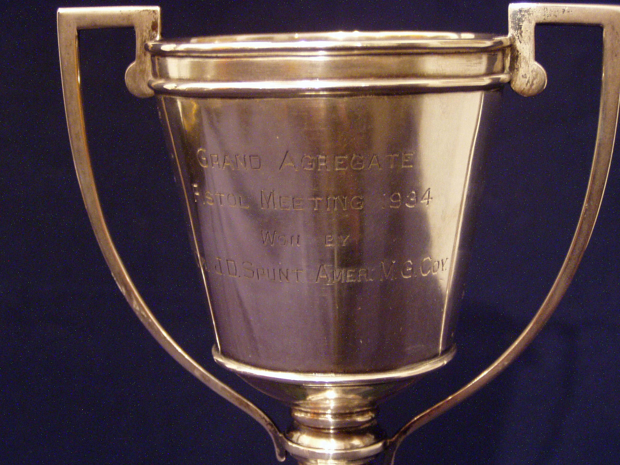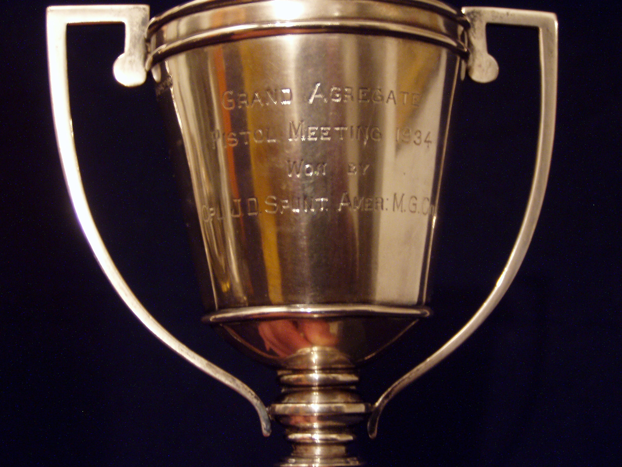 Aggregate Pistol Meeting 1934, won by Corporal J.D. Spunt Amer M.G. Coy.”* and wearing in