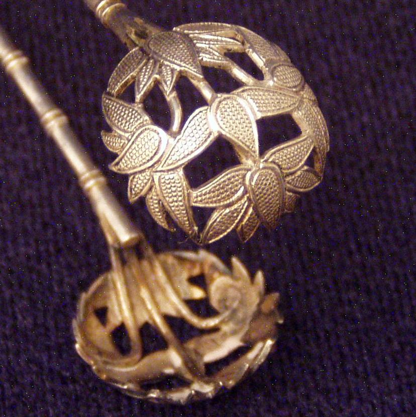 Mango like fruits springing from the ends. Cr 1890 Excellent Condition Length 4 3/8” Weight .6