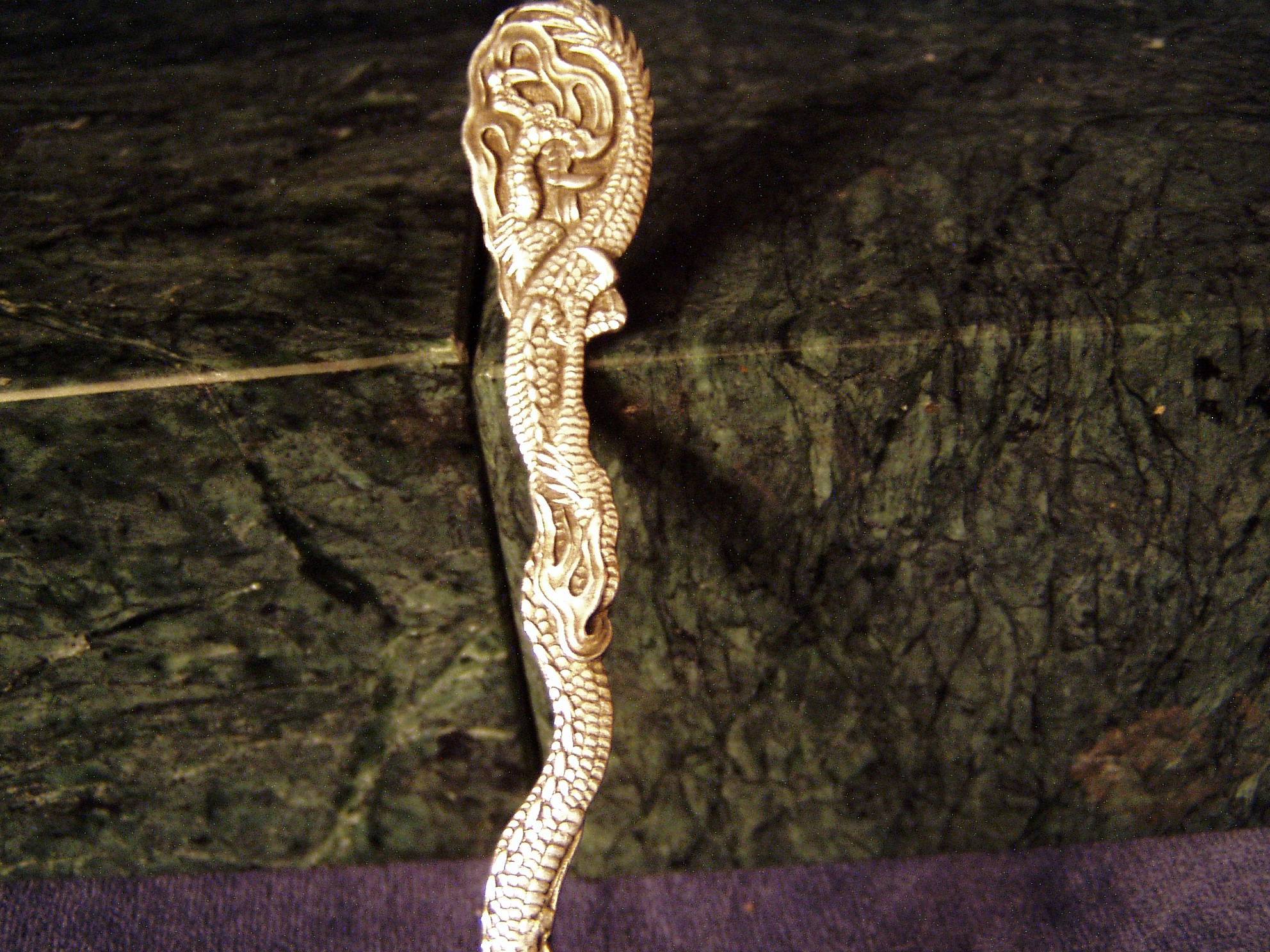 Pierced Souvenir Spoon of Yokohama w/applied tendrils on a three toed dragon writhing in