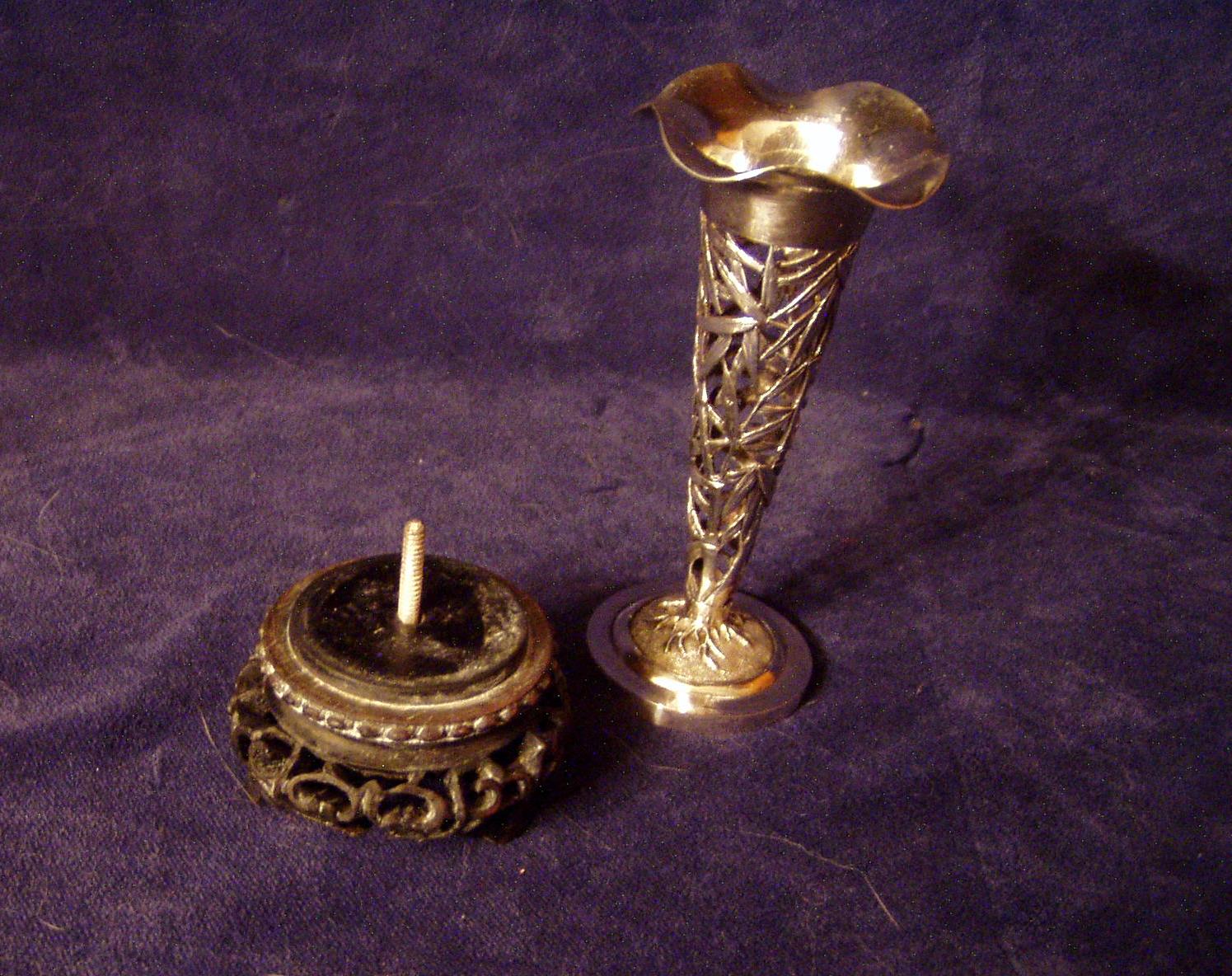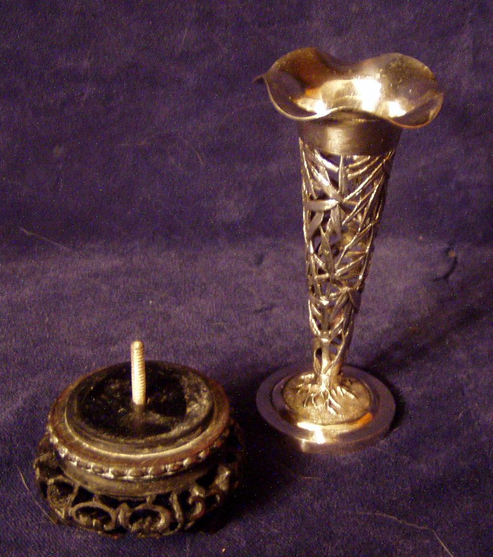 Chinese Export Silver Bud Vase missing glass liner w/pierced Bamboo motif including an