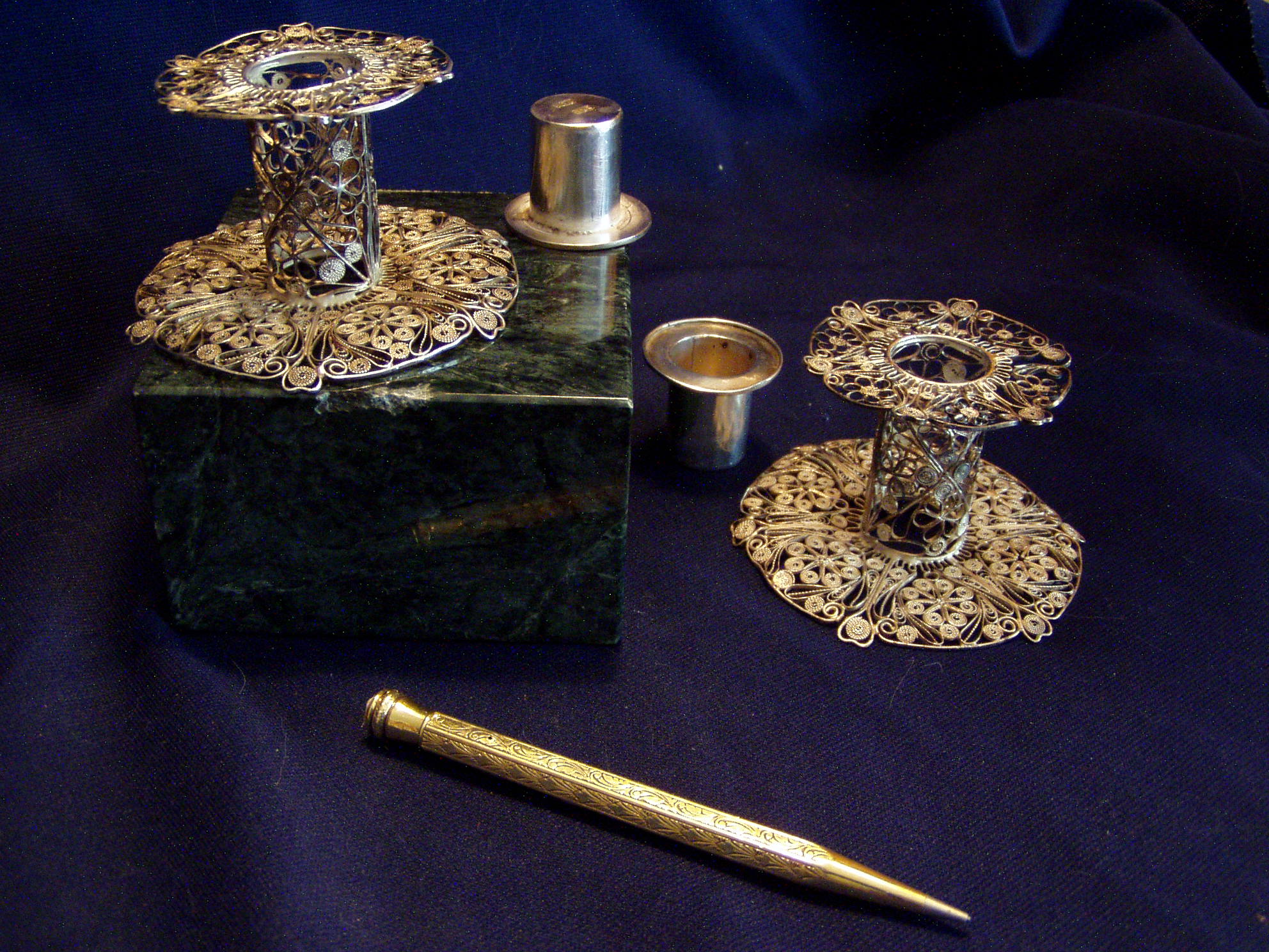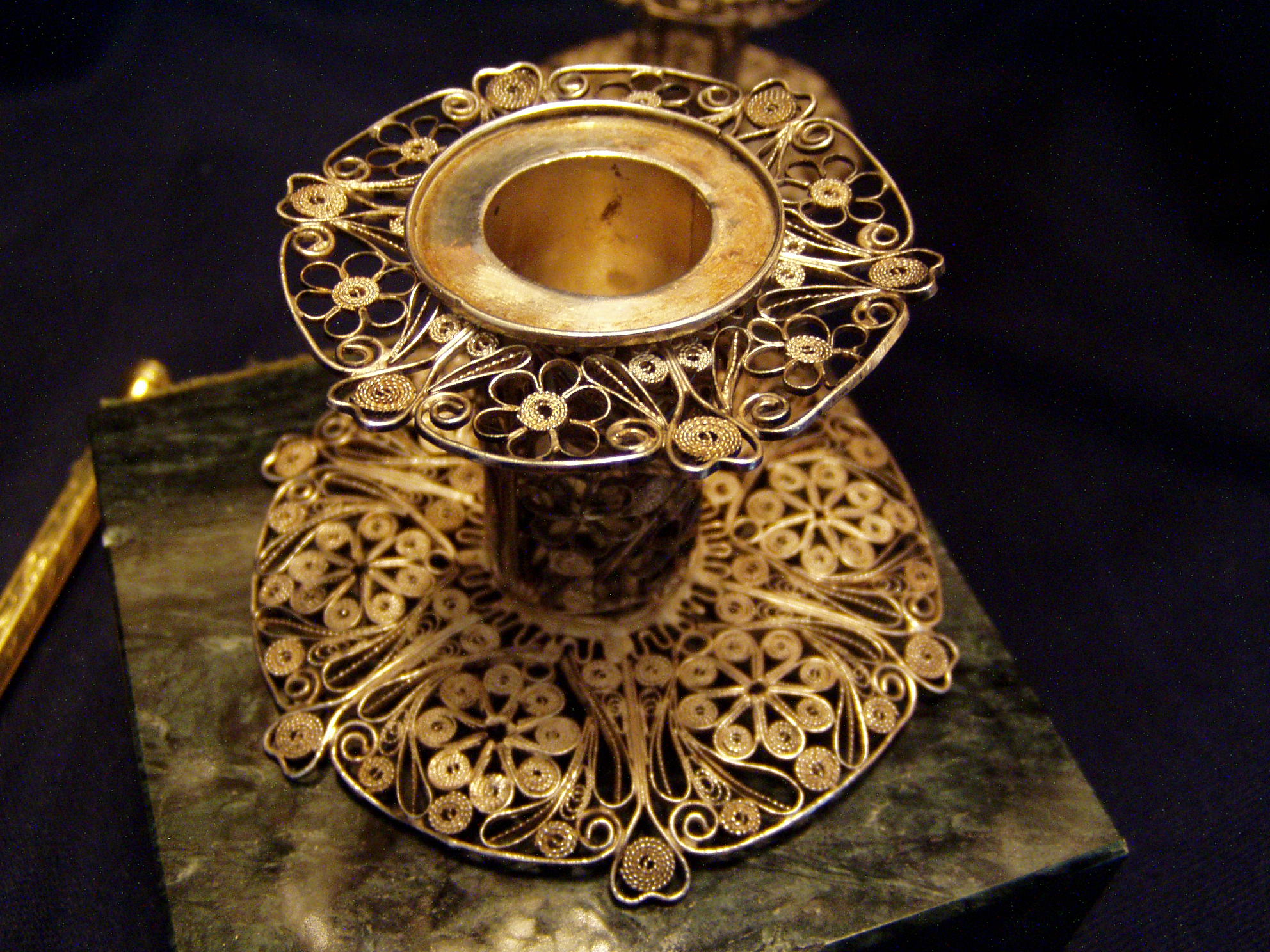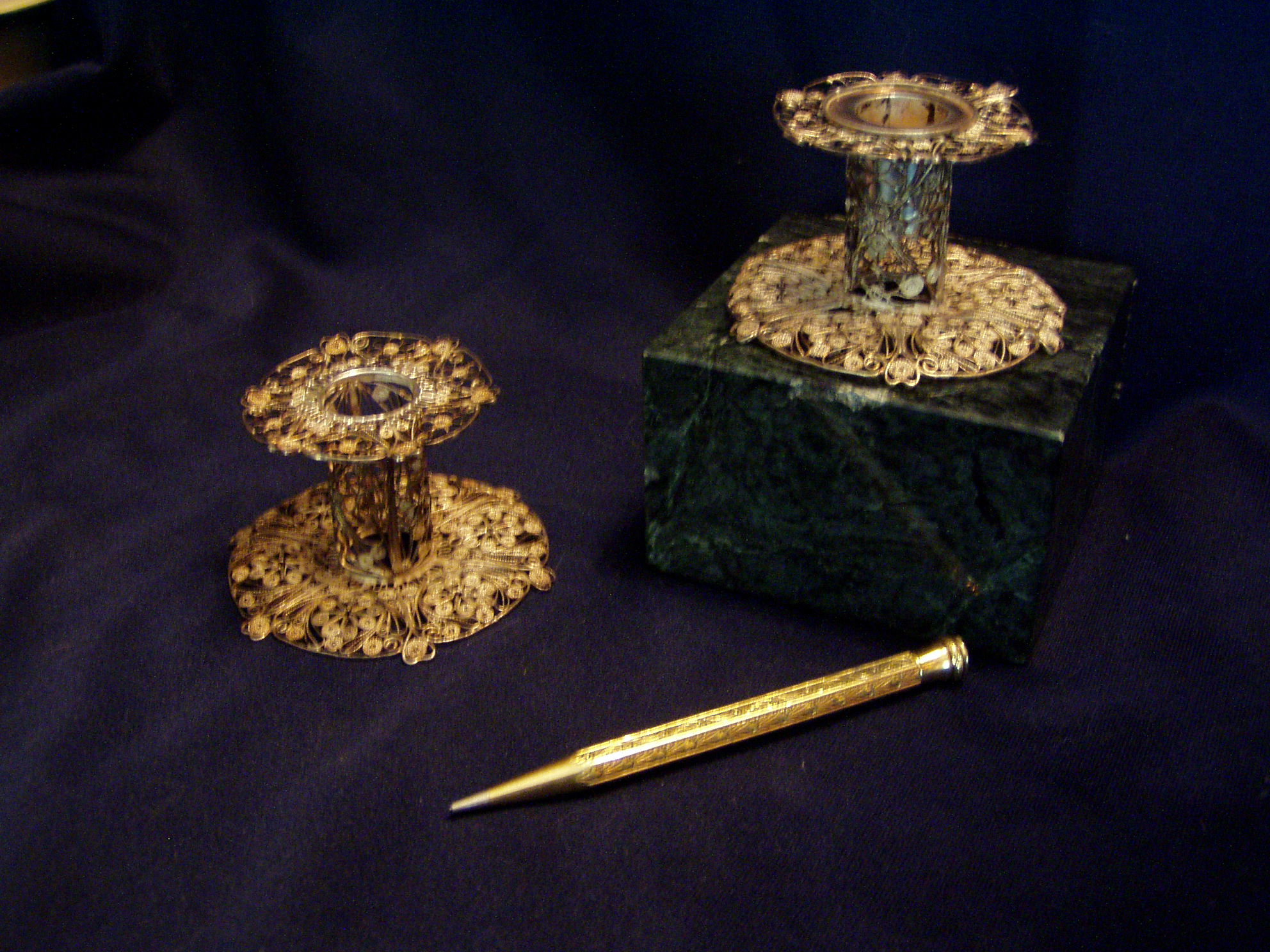 Pair of Chinese Export Silver filigree Candlesticks w/silver candleholder inserts marked