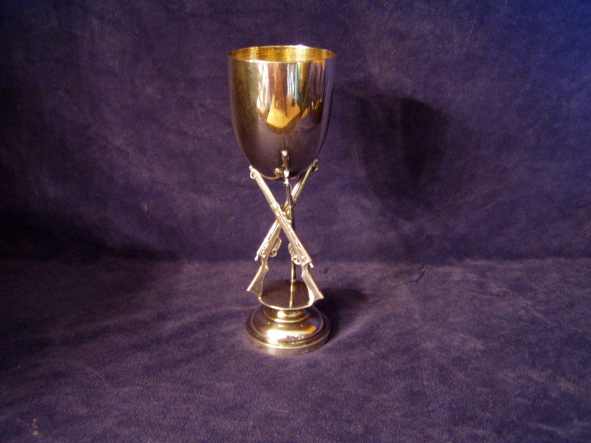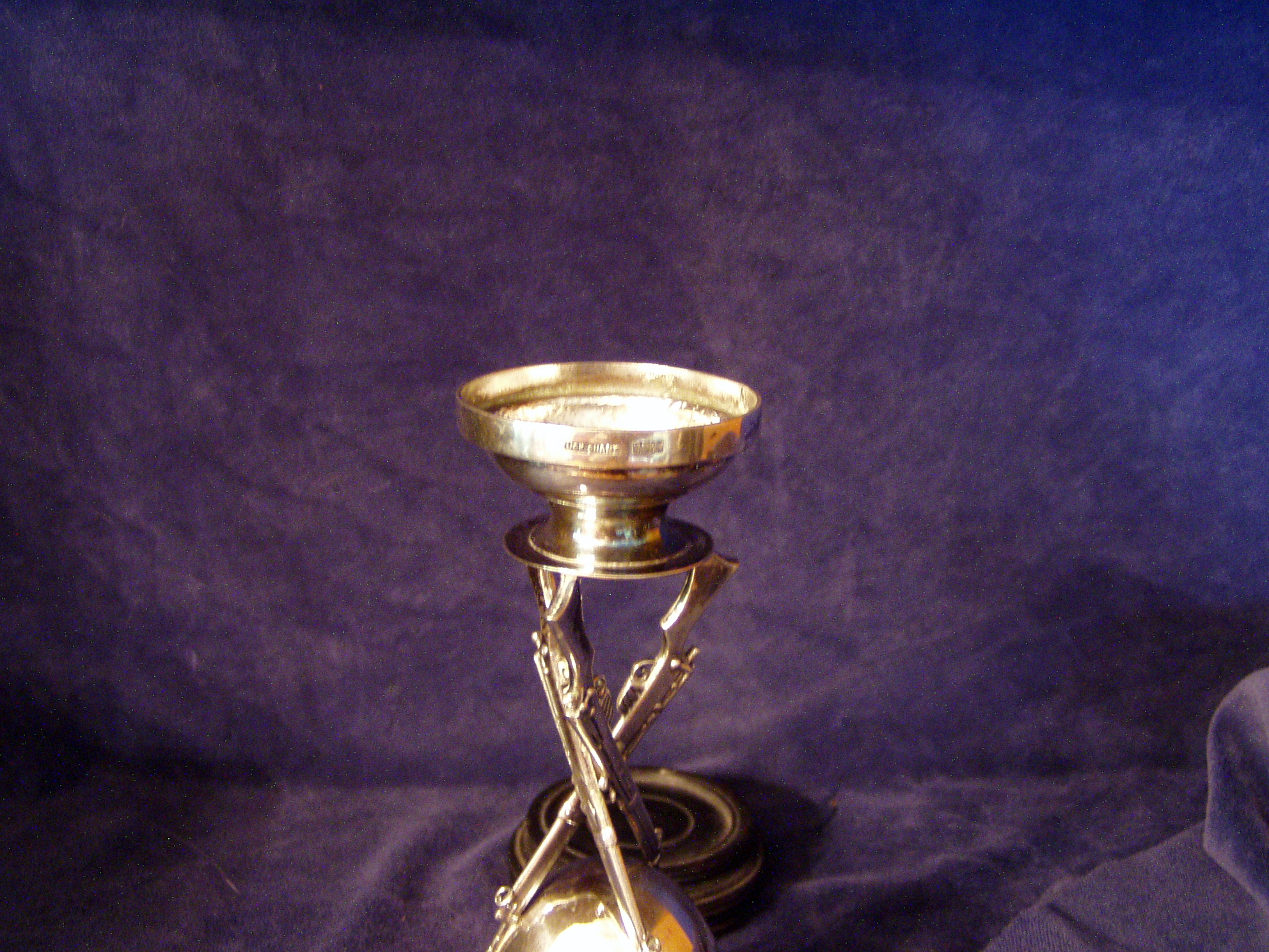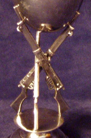 Chinese Export Silver Shooting trophy w/ bowl atop three WWI crossed bolt action rifles and