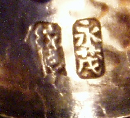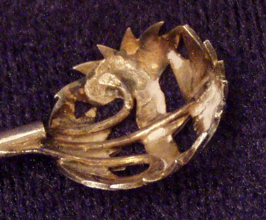Mango like fruits springing from the ends. Cr 1890 Excellent Condition Length 4 3/8” Weight .6